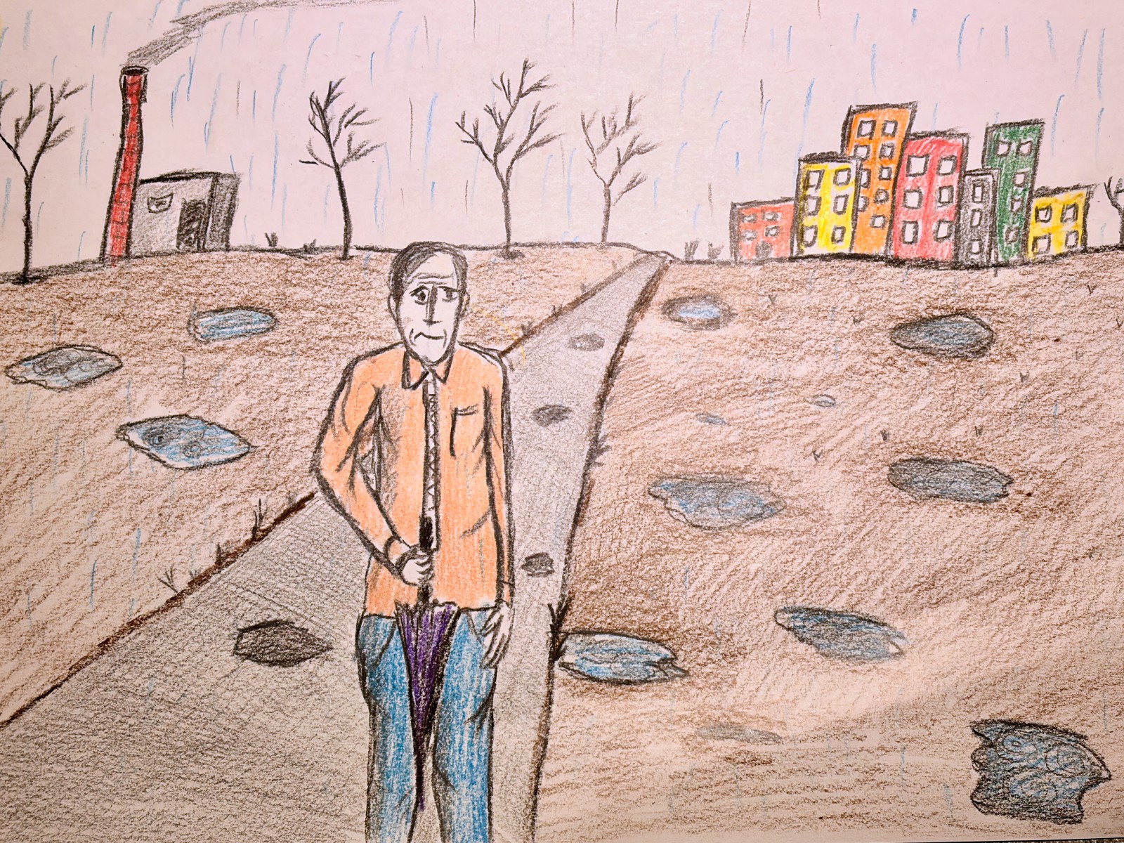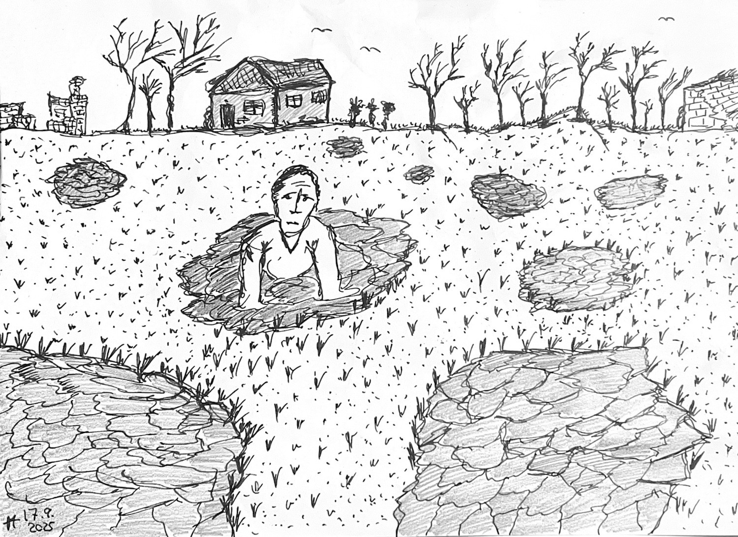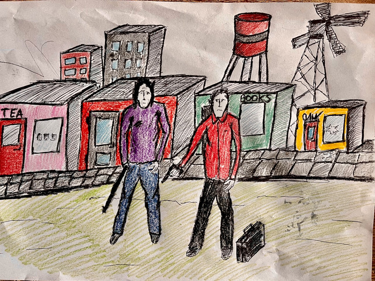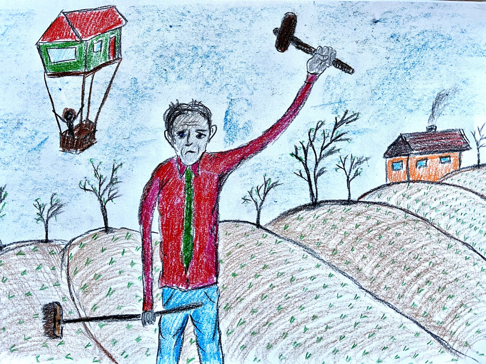 Wenn ich so acht Stunden jeden Tag mt Kindern arbeite, dann setzte ich mich einfach an einen viel zu kleinen Tisch und beginne zu zeichnen, eben at work. Sehr schnell setzten sich Kinder zu mir und beginnen auch zu malen. Dann kommen fragen: „Was malst Du?“ „Bist Du das?“ oder „Malst Du mir ein Auto?“. Die meisten Bilder entstehen nicht an einem Tag, es ist ja während der Arbeit. Aber immer, wenn es sich ergibt male ich an dem Bild weiter und so sind schon einige Bilder zusammen gekommen.