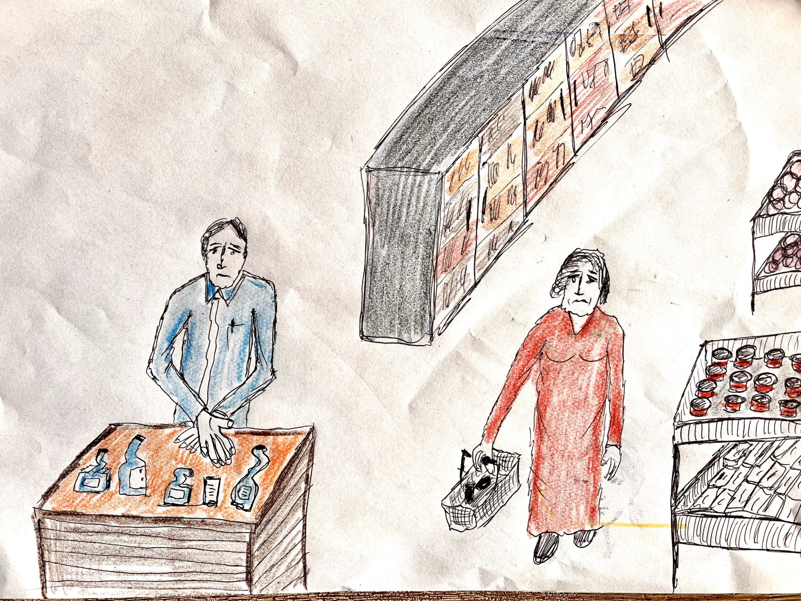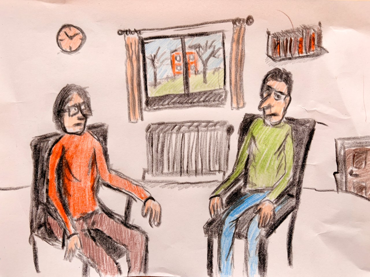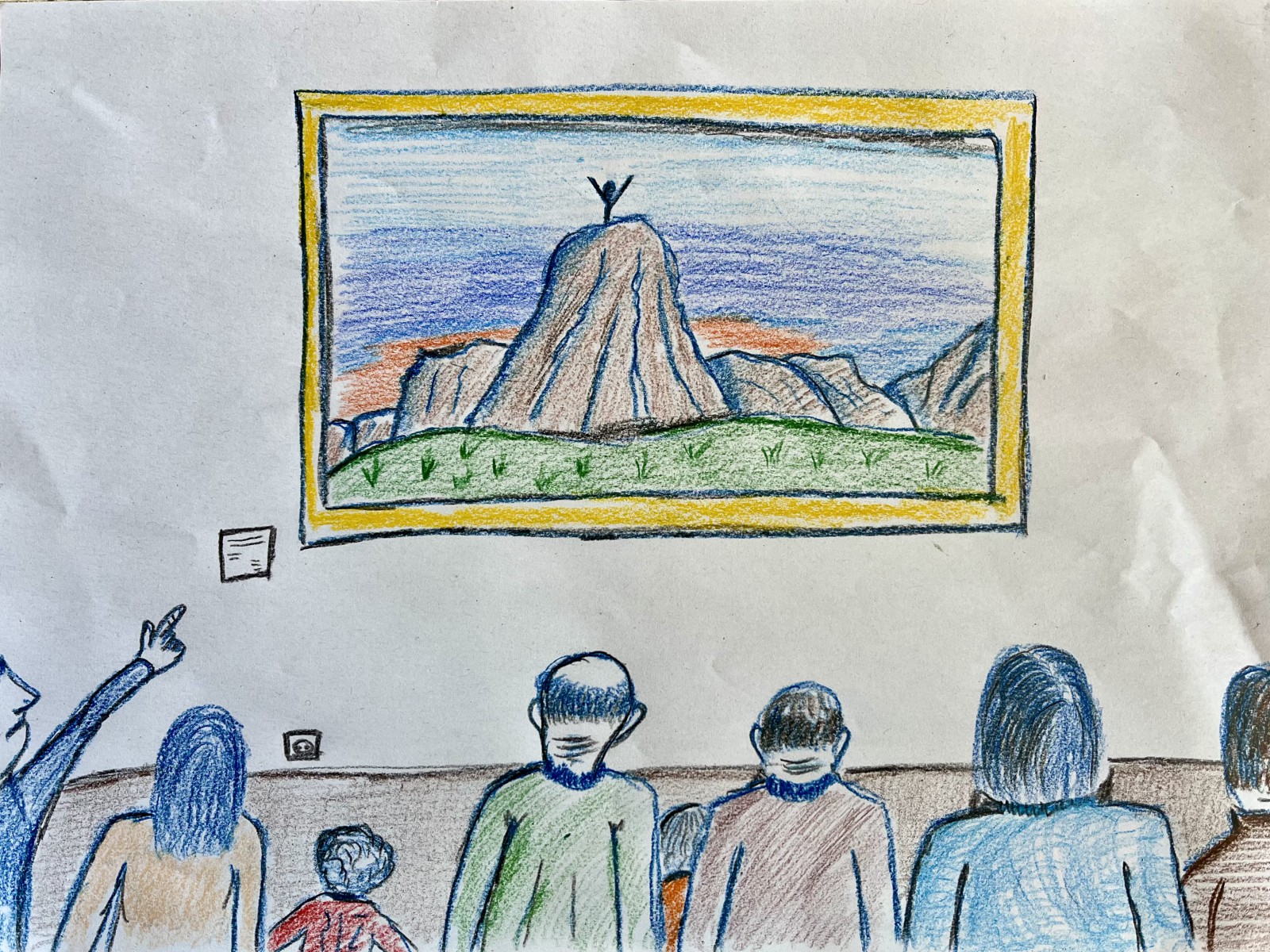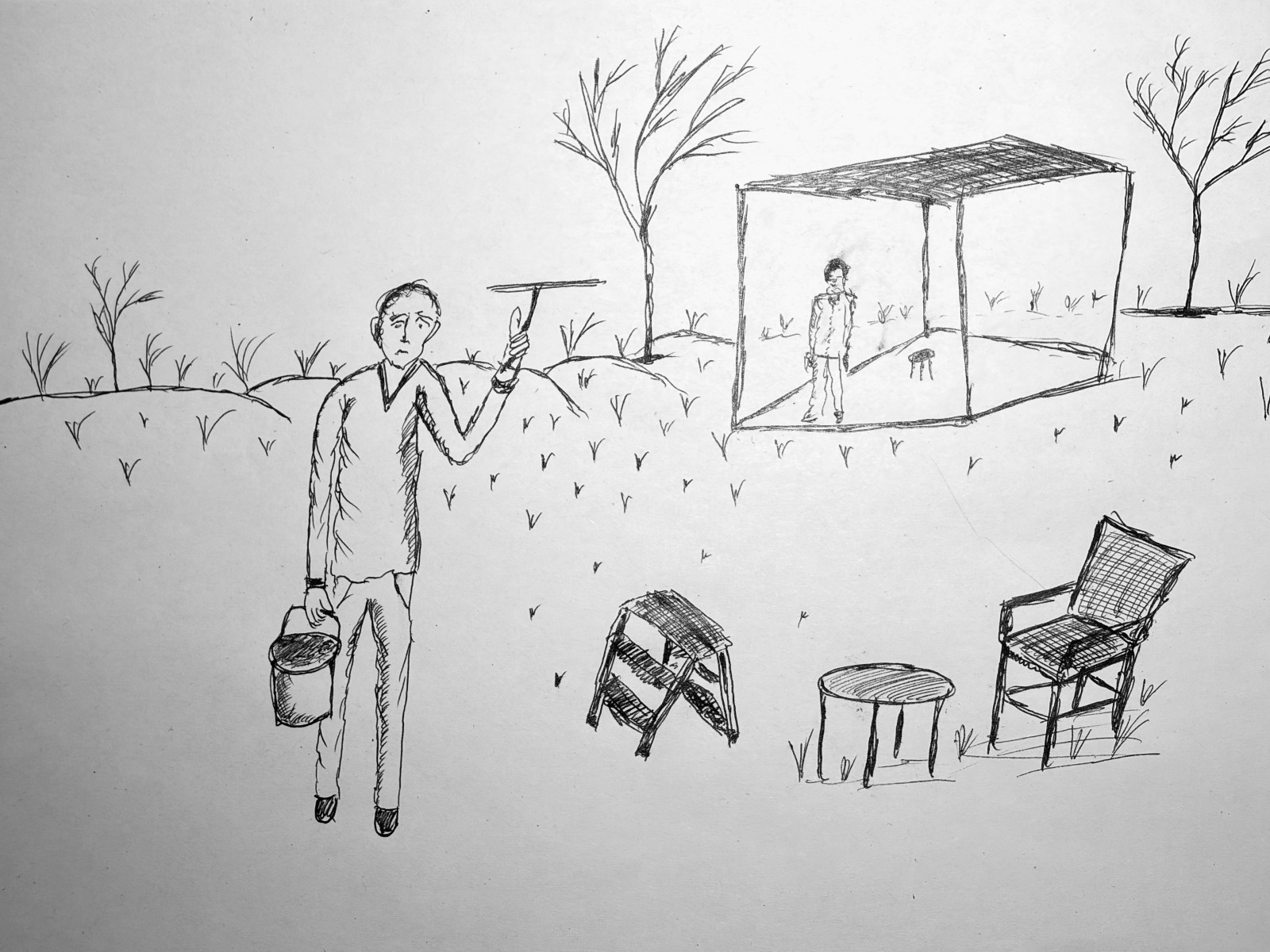 Wenn ich so acht Stunden jeden Tag mt Kindern arbeite, dann setzte ich mich einfach an einen viel zu kleinen Tisch und beginne zu zeichnen, eben at work. Sehr schnell setzten sich Kinder zu mir und beginnen auch zu malen. Dann kommen fragen: „Was malst Du?“ „Bist Du das?“ oder „Malst Du mir ein Auto?“. Die meisten Bilder entstehen nicht an einem Tag, es ist ja während der Arbeit. Aber immer, wenn es sich ergibt male ich an dem Bild weiter und so sind schon einige Bilder zusammen gekommen.